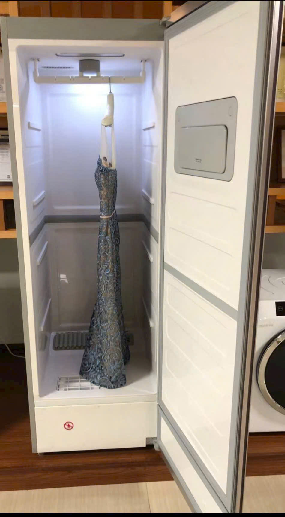 Chế độ hút ẩm phòng: Một tính năng “đáng đồng tiền” trong những ngày thời tiết nồm ẩm. Khi mở cửa tủ 45°, máy sẽ hoạt động như một máy hút ẩm, giữ cho không gian phòng luôn khô thoáng.