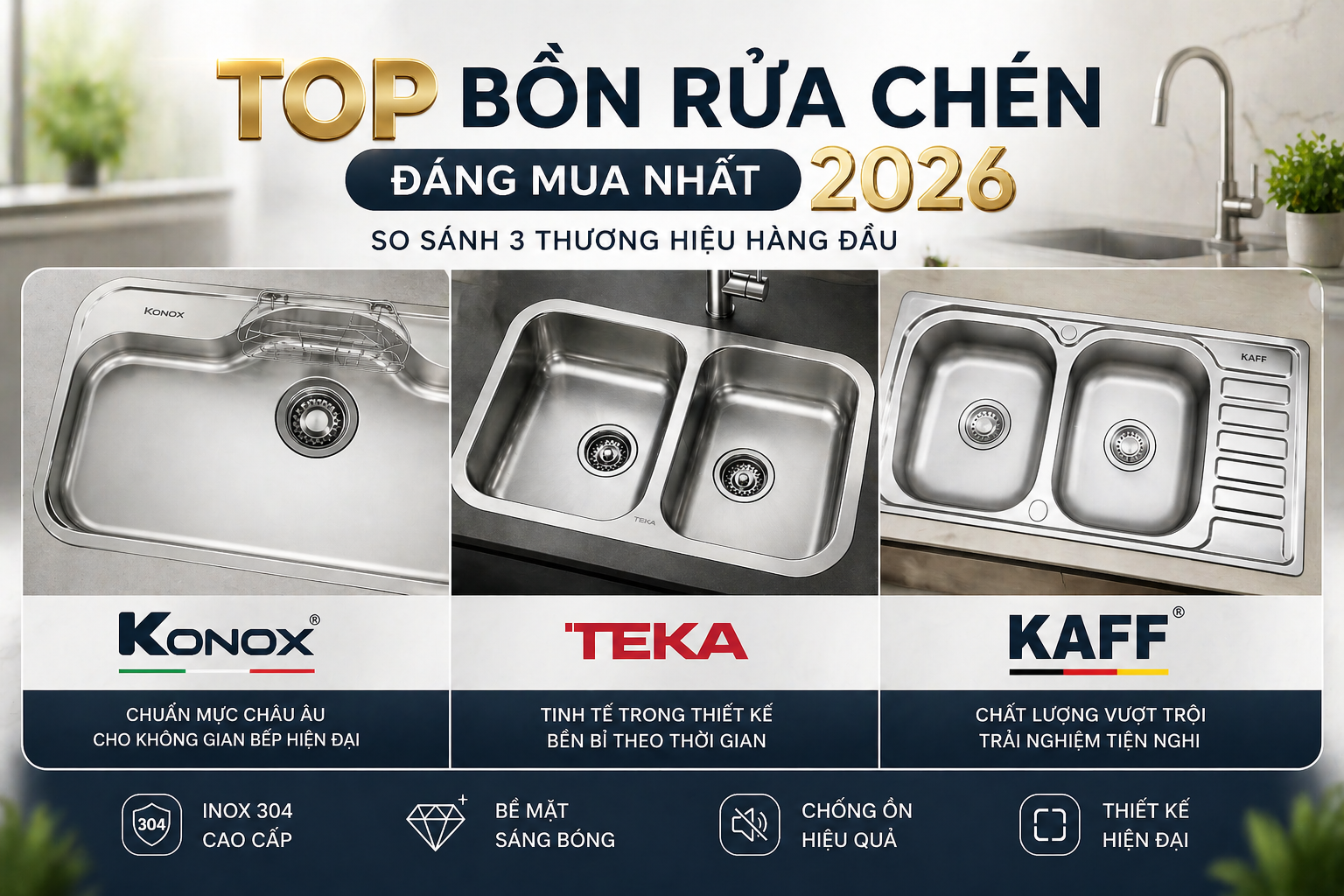 Top 5 bồn rửa chén đáng mua 2026